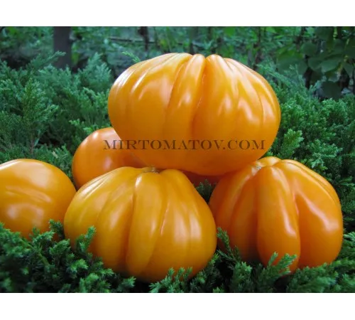 Határozatlan, magas, szezonközi. Hullámos szarvasgomba formájú gyümölcsök, élénk sárga, nagyon finom, édes, húsos, 150-350 g súlyúak. |